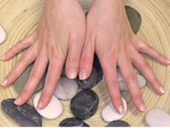 Käsien ja kynsien hellivä perushoito sisältäen kynsien muotoilun, kynsinauhojen ja kynsivallien hoidon,